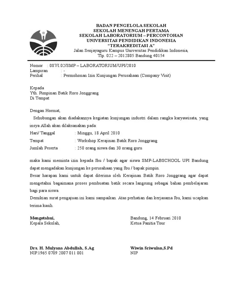 Contoh Surat Permohonan Kunjungan Dari Sekolah Ke Kampus / Top Pdf Surat Permohonan Kunjungan Industri 123dok Com / Mengirimkan surat resmi permohonan kunjungan studi (kop surat dengan logo sekolah/kampus dan stempel) · tanggal kunjungan studi virtual yang dikehendaki;. Contoh surat kunjungan studi banding contoh surat format lengkap 2020 . Surat pemberitahuan pembayaran oleh sekolah (spp); Nama kegiatan cetak tebal (contoh : Surat pengajuan kunjungan ke tvri jawa timur. Surat jenis ini dibuat oleh sekolah maupun kampus untuk melakukan kunjungan ke industri terkait dalam rangka pembelajaran.